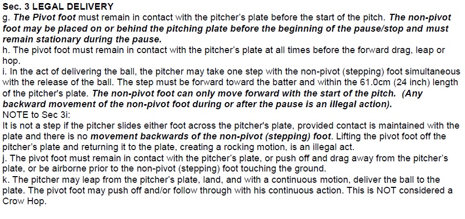 PLEASE NOTE THAT THERE WILL BE NO WARNINGS GIVEN TO THE PITCHER. IF ANY ILLEGAL PITCH IS MADE IT WILL BE CALLED IMMEDIATELY. ALL PITCHERS AND COACHES HAVE HAD THE OPPORTUNITY TO ATTEND A CLARIFICATION SESSION PRIOR TO THE START OF THE SEASON.